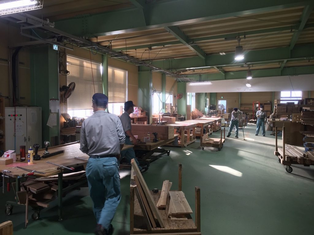 家具製作など加工を行う工場内部。清掃が徹底されている